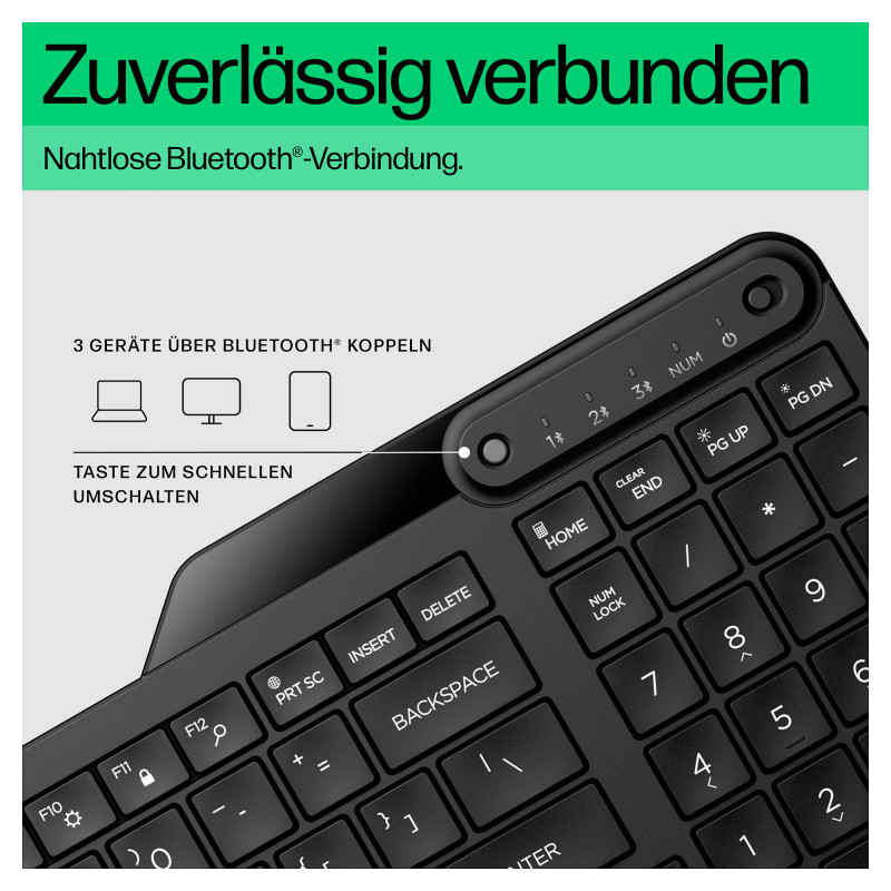 Be anywhere and still be ready to go with the HP 460 Multi-Device Bluetooth Keyboard. It offers full-featured functionality with easy-to-pack-up portability to go wherever life takes you. With versatility to pair multiple devices combined with functional design, this true multi-device keyboard is built to help you stay moving, working, playing, and connected."
