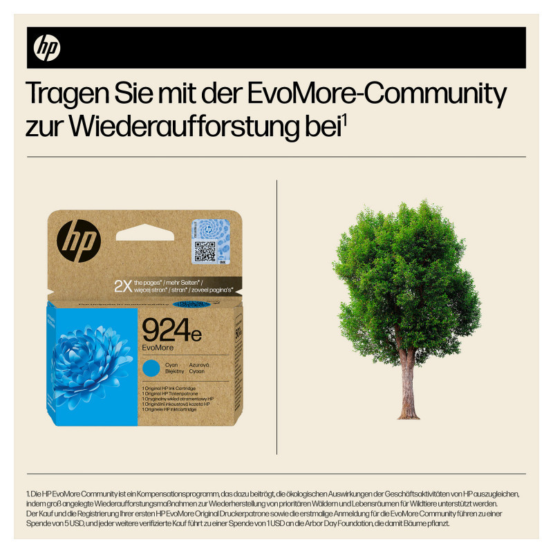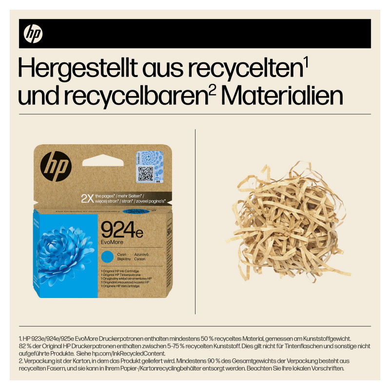 Designed to print two times the pages as standard cartridges,[3] have a lower carbon footprint[2] and be easily recycled,[4] HP EvoMore Original Ink Cartridges combine HP’s legendary performance and quality with added sustainability features."
