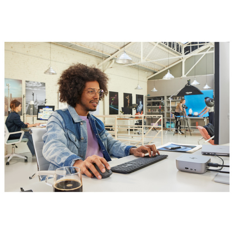 Now you can make your keyboard truly yours while enjoying an elevated typing experience. That's because you can connect up to 3 devices either via Bluetooth or USB-A. We've also included many must-have features like comfortable, quiet, soft return keys, 20+ of which can be programmed with shortcuts, controllable smart backlight, and a long life, rechargeable battery."