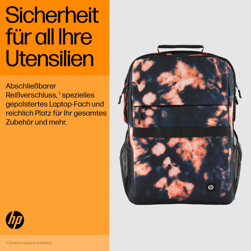 "HP Campus XL Tie Dye Backpack. Case type: Backpack. Weight: 620 g"\n"Secure Everything in its Place