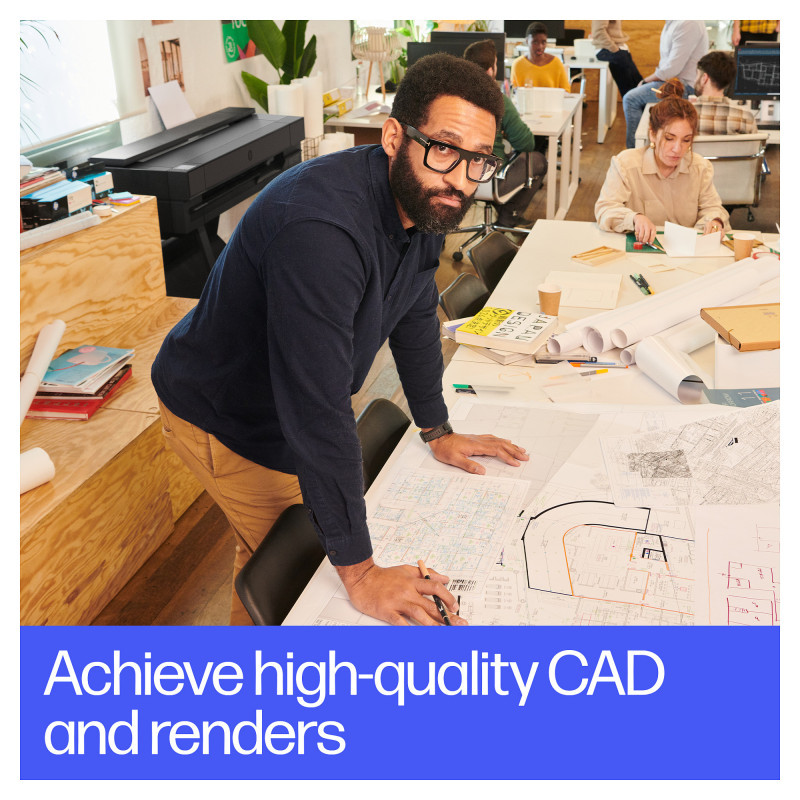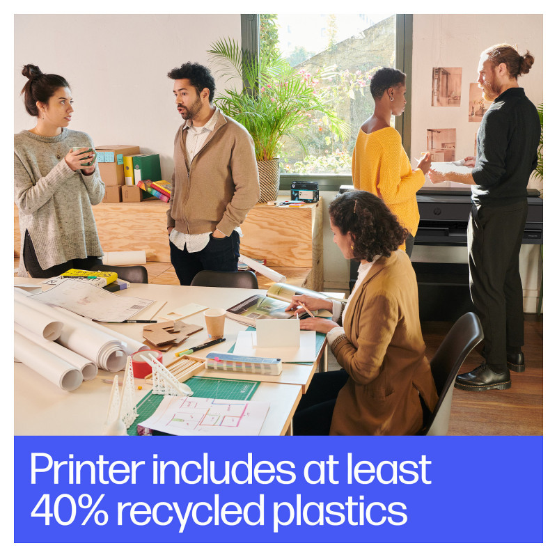 "HP Designjet T850 36-in Printer. Print technology: Thermal inkjet, Maximum resolution: 2400 x 1200 DPI, Page description languages: HP-GL/2, TIFF, JPEG, HP-RTL, CALS G4, URF. Maximum print size: A0 (841 x 1189 mm), Paper tray media types: Coated paper, Plain paper, Bond paper, Photo paper, Matte paper, Banner, Heavy paper, Satin paper, ISO A-series sizes (A0...A9): A0, A1, A2, A3, A4. Ethernet LAN data rates: 1000 Mbit/s, Mobile printing technologies: Apple AirPrint. Product colour: Black, Internal memory: 1024 MB, Country of origin: China, Thailand, Switzerland. Power consumption (off): 0.2 W, Power consumption (sleep): 2.5 W, AC input voltage: 100 - 240 V"\n" Maximize your team’s agility with the world’s easiest A4-A0 experience.[1] Simplify multi-size printing with the integrated input tray. Streamline print workflows with HP Click. And meet office and environmental needs with this compact plotter.