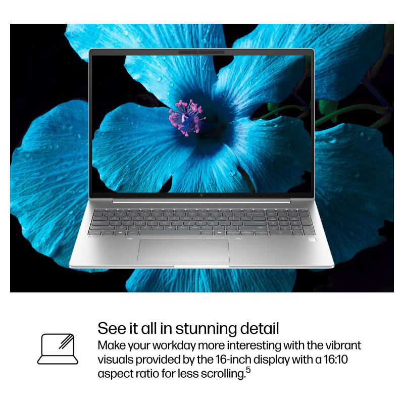 "HP EliteBook 6 G1i AI. Product type: Laptop, Form factor: Clamshell. Processor family: Intel Core Ultra 7, Processor model: 255U. Display diagonal: 40.6 cm (16""), HD type: WUXGA, Display resolution: 1920 x 1200 pixels. Internal memory: 16 GB, Internal memory type: DDR5-SDRAM. On-board graphics card model: Intel® Graphics. Mobile network generation: 4G. Operating system installed: Windows 11 Pro. Product colour: Silver"\n"AI-ready for enterprise productivity