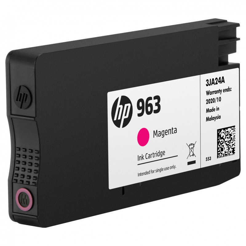 "HP 963 Magenta Original Ink Cartridge. Colour ink type: Pigment-based ink, Cartridge capacity: Standard Yield, Colour ink page yield: 700 pages, Colour ink volume: 10.77 ml, Printing colours: Magenta, Quantity per pack: 1 pc(s)"\n"Ideal for workgroups who need dependable performance for professional-quality printing, page after page.