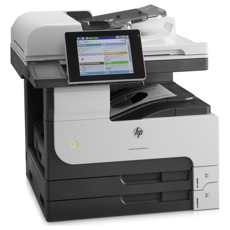 "HP LaserJet Enterprise MFP M725dn. Print technology: Laser, Printing: Mono printing, Maximum resolution: 1200 x 1200 DPI. Copying: Mono copying, Maximum copy resolution: 600 x 600 DPI. Scanning: Colour scanning, Optical scanning resolution: 600 x 600 DPI. Duplex functions: Print. Maximum ISO A-series paper size: A3. Direct printing. Product colour: Black, Grey"\n"Print high-quality documents on an array of paper sizes up to A3, launch one-touch workflows, and manage jobs on the desktop with touchscreen ease. Enable large-volume printing on a wide range of paper sizes – up to A3 – with a 4,600-sheet maximum input capacity.[1] Preview and edit scanning jobs; centrally manage printing policies; safeguard sensitive business information.