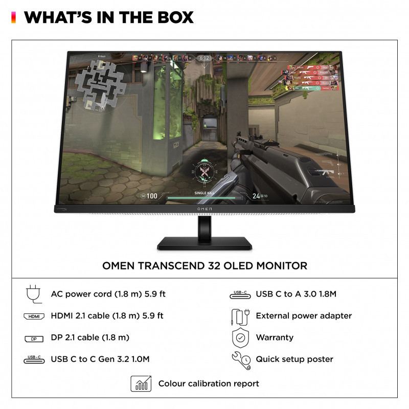 "HP OMEN Transcend 31.5 inch UHD 240Hz OLED Gaming Monitor - Transcend 32. Display diagonal: 80 cm (31.5""), Display resolution: 3840 x 2160 pixels, HD type: 4K Ultra HD, Display technology: OLED, Display surface: Matt, Response time: 0.03 ms, Native aspect ratio: 16:9, Viewing angle, horizontal: 178°, Viewing angle, vertical: 178°. Built-in speaker(s). Built-in USB hub, USB hub version: 3.2 Gen 2 (3.1 Gen 2). VESA mounting, Height adjustment. Product colour: White"\n"The Portal Between Playing and Creating