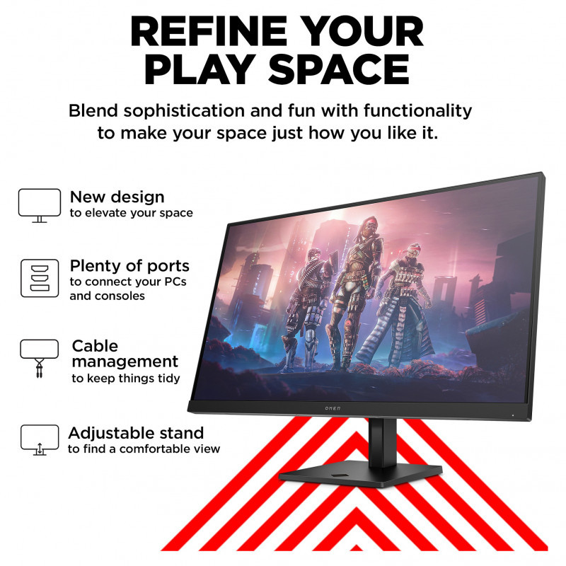 Reach new possibilities with the OMEN by HP 31.5-inch QHD 165Hz Gaming Monitor. Quick performance and vibrant color let you get lost in the games you love most, while the sleek design functions to look and feel great on your desk."