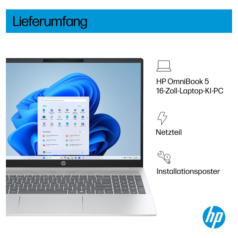 HP OmniBook 5 AI 16" 2K Core Ultra 5 225U 16GB/512GB SSD Win11 Home - 16-af1452ng