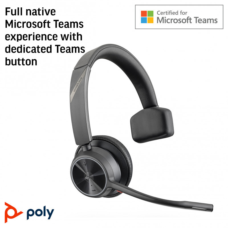 "HP Poly Voyager 4310 Microsoft Teams Certified USB-A Headset +BT700 dongle. Product type: Headset. Connectivity technology: Wireless, Bluetooth. Recommended usage: Office/Call center. Wireless range: 91 m. Cable length: 1.5 m. Weight: 122 g. Product colour: Black"\n"Cut wires. Cut Costs.