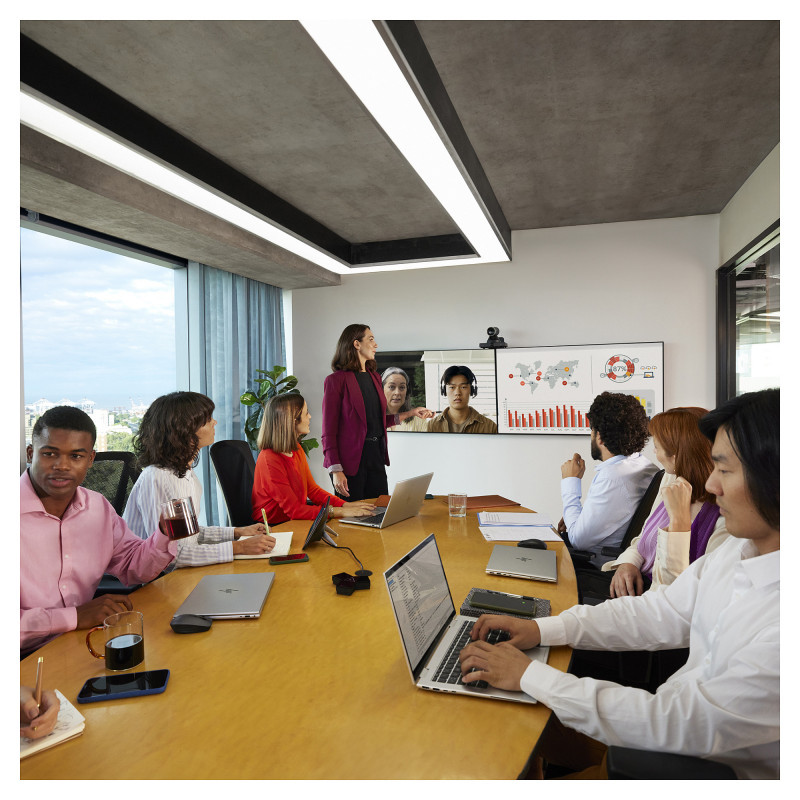 Keep presentations engaging with the Poly Studio E60 smart MPTZ optical zoom camera. The main presenter is always in frame, and every person in the room is shown with exceptional accuracy, even at the far end. With every detail captured, presentations are easier to follow."