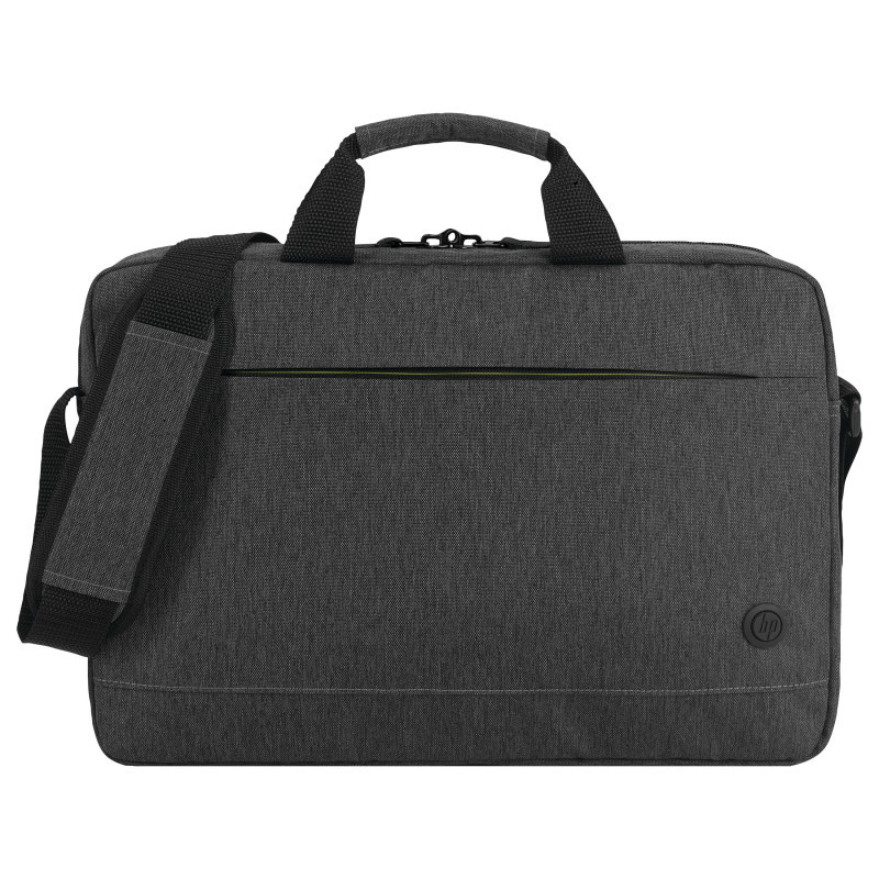 Commute with a stylish and durable laptop bag thoughtfully designed with the environment in mind and made with recycled fabric[1] The new HP Prelude Pro 15.6"" Laptop Bag with internal olive lining color comes with safety features for your peace of mind when you carry your devices from work to home and beyond."
