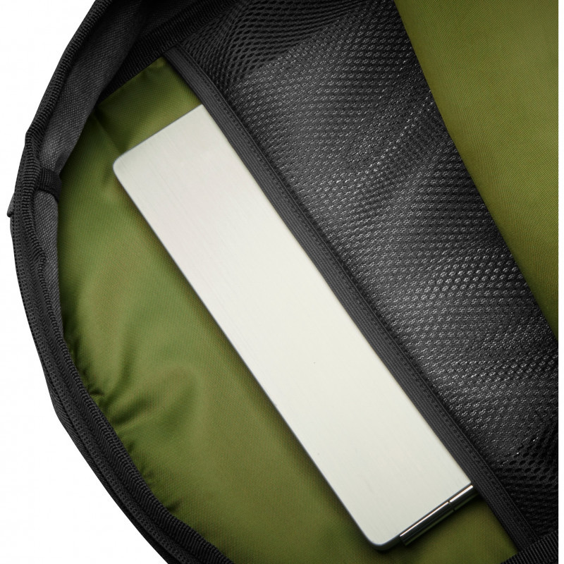 Commute with a stylish and durable backpack thoughtfully designed with the environment in mind and made with recycled fabric[1]. The new HP Prelude Pro 15.6-inch Backpack with internal olive lining color comes with safety features for your peace of mind when you carry your devices from work to home and beyond."
