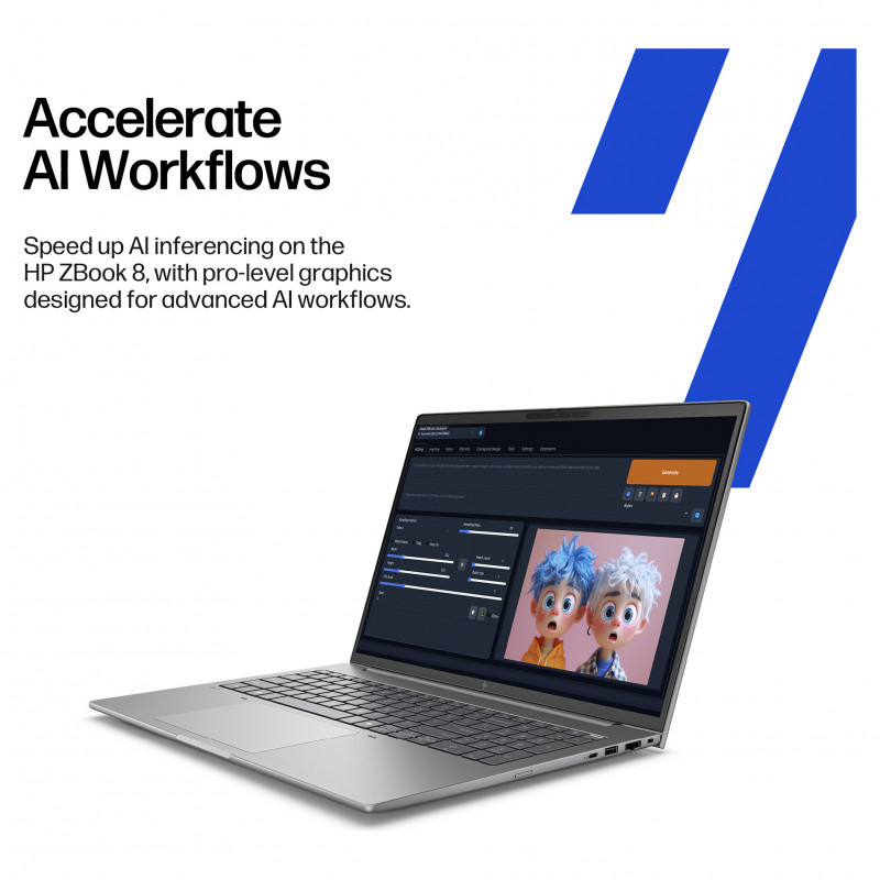 "HP ZBook 8 G1i. Product type: Mobile workstation, Form factor: Clamshell. Processor family: Intel Core Ultra 7, Processor model: 265H. Display diagonal: 40.6 cm (16""), HD type: WUXGA, Display resolution: 1920 x 1200 pixels, Touchscreen. Internal memory: 64 GB, Internal memory type: DDR5-SDRAM. Total storage capacity: 2 TB, Storage media: SSD. On-board graphics card model: Intel Arc 140T. Operating system installed: Windows 11 Pro. Product colour: Silver"\n"Step up performance. Not size.