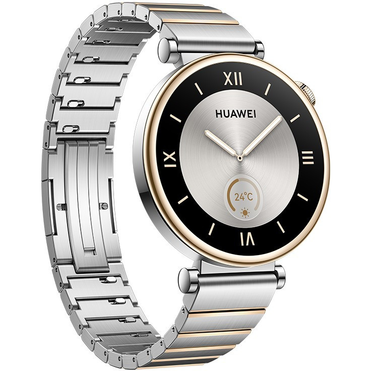 "Huawei WATCH GT 4. Display diagonal: 3.35 cm (1.32""), Display technology: AMOLED, Display resolution: 466 x 466 pixels. Flash memory: 32 GB. Wi-Fi. GPS (satellite). Battery capacity: 323 mAh. Weight: 37 g. Band colour: Silver"\n"HUAWEI WATCH GT 4