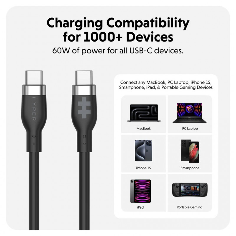 Hyper HyperJuice USB-C Silicone Charging Cable | HJ4011BKGL