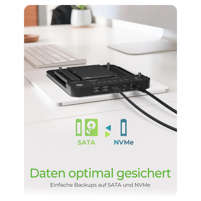 Experience almost limitless flexibility with this cloning station: clone from 2.5""/3.5"" SATA HDD/SSD to M.2 PCIe NVMe SSD or from M.2 SATA SSD to M.2 PCIe NVMe SSD or even M.2 PCIe NVMe SSD to M.2 PCIe NVMe SSD - all it takes is just the push of a button.