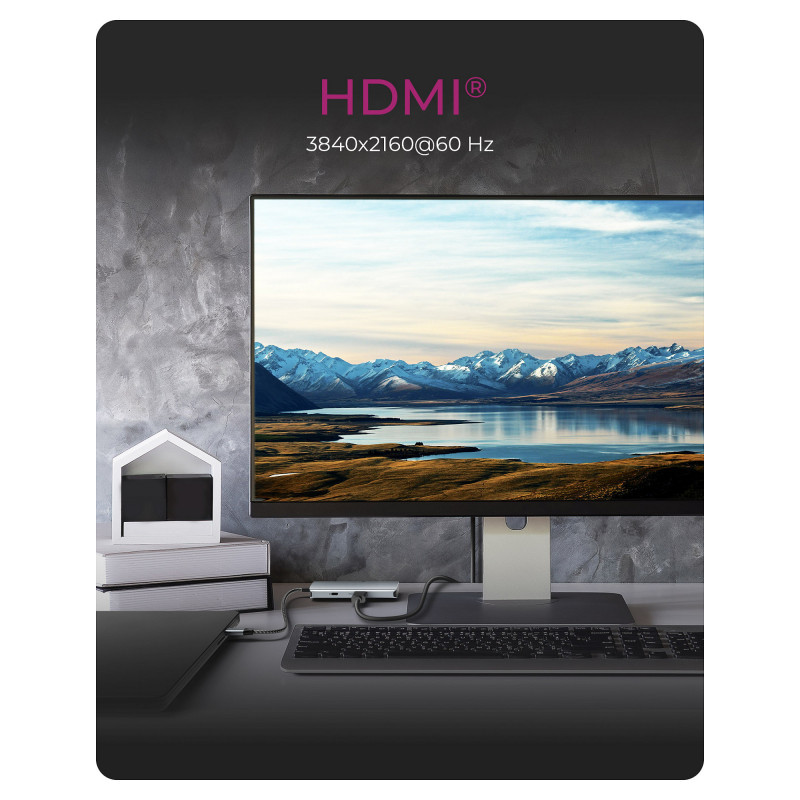 "ICY BOX IB-DK4022a-CPD. Connectivity technology: Wired, Host interface: USB 3.2 Gen 1 (3.1 Gen 1) Type-C, USB Power Delivery up to: 100 W. Product colour: Aluminium, Silver, Data transfer rate: 5 Gbit/s, HD type: 4K Ultra HD. Power source type: USB, Output voltage: 20 V, Output current: 5 A. Width: 113 mm, Depth: 45 mm, Height: 15 mm. Package weight: 172 g"\n