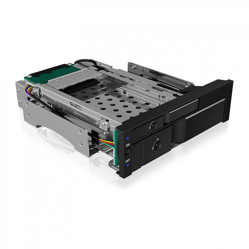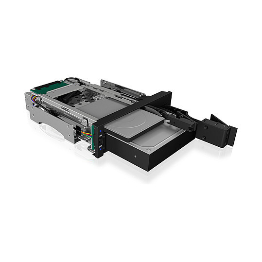 Fits into a 5.25"" bay and offers space for one 2.5"" and one 3.5"" drive. Both drives have their own connection and work independetly of each other. A data transfer rate of up to 6 Gbit/s can be achieved.