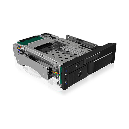 "ICY BOX IB-173SSK. Size (imperial): 13.3 cm (5.25""), Type: Storage drive tray, Product colour: Black. Width: 145 mm, Depth: 195 mm, Height: 40 mm. Package width: 175 mm, Package depth: 230 mm, Package height: 55 mm. Quantity per pack: 1 pc(s), Cables included: SATA, Number of lock keys included: 2 pc(s). Products per master (outer) case: 16 pc(s), Country of origin: China"\n"Can do both