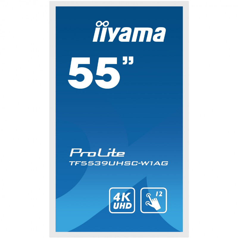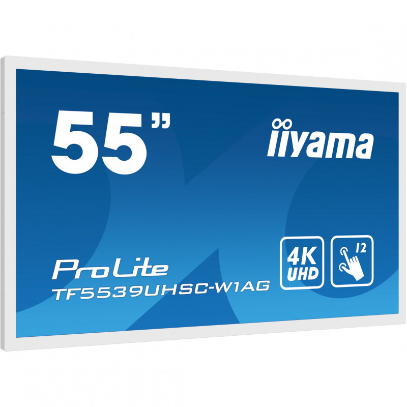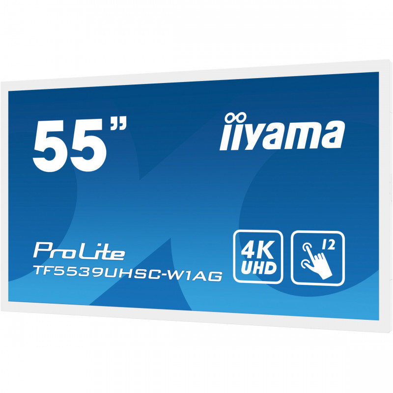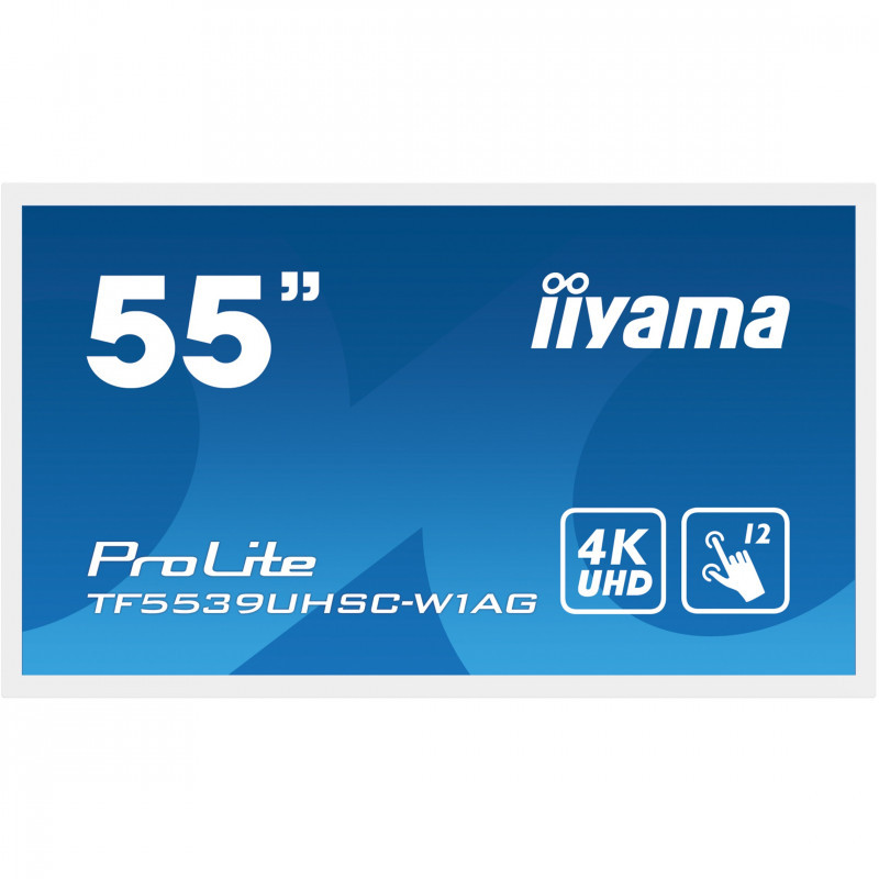 "iiyama ProLite 55"" Open Frame PCAP interactive large format display with 15pt touch capability, IPS panel technology and touch through glass function for landscape, portrait or face up use. Display diagonal: 139.7 cm (55""), Display resolution: 3840 x 2160 pixels, HD type: 4K Ultra HD, Display technology: LED, Response time: 8 ms, Native aspect ratio: 16:9, Viewing angle, horizontal: 178°, Viewing angle, vertical: 178°. Built-in speaker(s). VESA mounting. Product colour: White"\n"The 4K UHD (3840x2160) Open Frame TF5539UHSC-W1AG with Touch-Through-Glass function guarantees a seamless and accurate touch response for true kiosk integration or interactive behind-glass-retail applications. The IPS panel technology offers exceptional colour performance and wide viewing angles, making it a perfect solution for interactive shop windows, education, kiosks and in-store communications. Featuring a metal housing with 60950-1 ball-drop proof, scratch-resistant and edge-to-edge glass, this display can be installed in the most demanding environments for an 24/7 usage and in different set-ups as a result of its Open Frame side mounting holes. For ease of integration, the TF5539UHSC-W1AG can be equipped with optional external mounting brackets ( OMK4-2 ) making it an ideal solution for kiosk integrators and interactive multimedia."