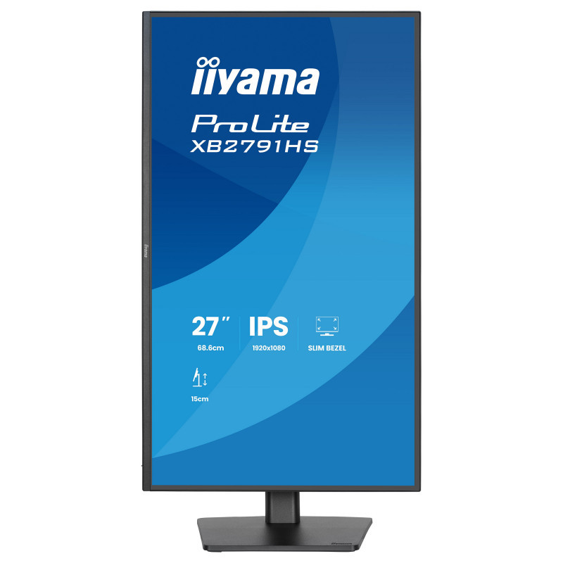 "iiyama ProLite XB2791HS-B1. Display diagonal: 68.6 cm (27""), Display resolution: 1920 x 1080 pixels, HD type: Full HD, Display technology: LED, Display surface: Matt, Native aspect ratio: 16:9, Viewing angle, horizontal: 178°, Viewing angle, vertical: 178°. Built-in speaker(s). VESA mounting, Height adjustment. Product colour: Black"\n"The ProLite XB2791HS features a 27'' Full HD display with a sleek 4-side slim bezel design, helping you create a clean and modern multi-monitor workspace. The IPS panel delivers sharp detail, vivid colours and consistent brightness from all angles. With a fast 120Hz refresh rate, visuals remain smooth and responsive, whether you're working on complex tasks or enjoying multimedia. Flicker-free technology and a blue light reducer enhance eye comfort, especially during extended use. Its ergonomic stand offers 15cm of height adjustment along with tilt, swivel and pivot functions, so you can easily position the screen to suit your posture and stay comfortable throughout the day. Integrated speakers and a headphone socket support a clutter-free desk setup while providing convenient audio for calls. With EPEAT Silver registration, TCO Certified compliance and an Energy Label C rating, the XB2791HS supports both efficient work and responsible energy use."