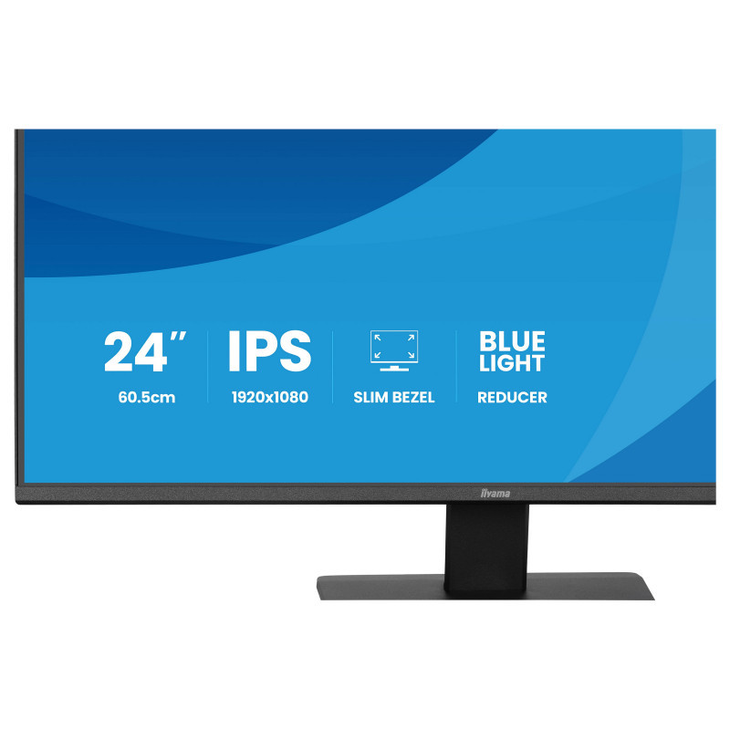 "iiyama ProLite X2491H-B1. Display diagonal: 60.5 cm (23.8""), Display resolution: 1920 x 1080 pixels, HD type: Full HD, Display technology: LCD, Display surface: Matt, Native aspect ratio: 16:9, Viewing angle, horizontal: 178°, Viewing angle, vertical: 178°. VESA mounting. Product colour: Black"\n"The ProLite X2491H features a 24'' Full HD display with a sleek 4-side slim bezel design, helping you create a clean and modern multi-monitor workspace. The IPS panel delivers sharp detail, vivid colours and consistent brightness from all angles. With a fast 120Hz refresh rate, visuals remain smooth and responsive, whether you're working on complex tasks or enjoying multimedia. Flicker-free technology and a blue light reducer enhance eye comfort, especially during extended use. A headphone socket provides convenient audio connectivity for private listening and online calls. With EPEAT Silver registration, TCO Certified compliance and an Energy Label C rating, the X2491H supports both efficient work and responsible energy use."