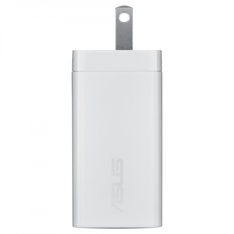 The ASUS 65W USB-C GaN Charger offers up to 65 watts of power when charging one device, and features Smart Load Balancing to distribute output between the two USB Type-C® ports during simultaneous charging.