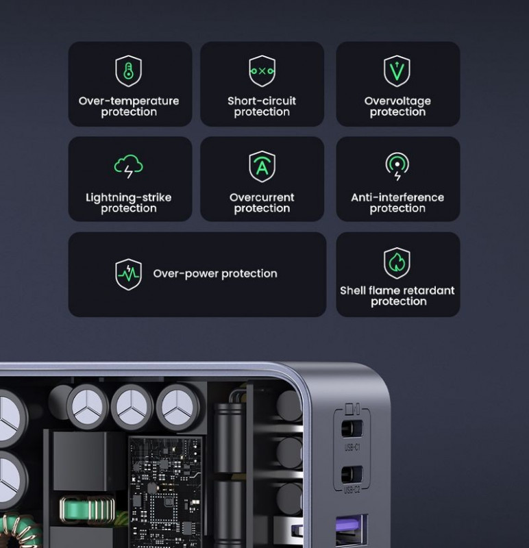 Įkroviklis Ugreen X553 GaN 65W 2xUSB-C/USB-A pilkas (35042)