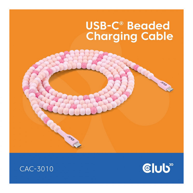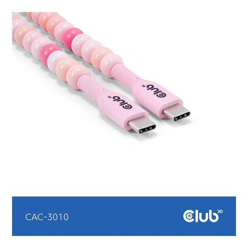 Club3D Lifestyle USB-C Perlen-Kabel PD60W.480Mbps 2m rosa