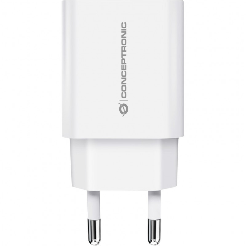"Conceptronic 1-Port 20W USB-C PD Charger. Charger type: Indoor, Power source type: AC, Charger compatibility: Universal. Input voltage: 100 - 240 V, Maximum output voltage: 12 V. USB Type-C ports quantity: 1, Fast charging. Product colour: White"\n"