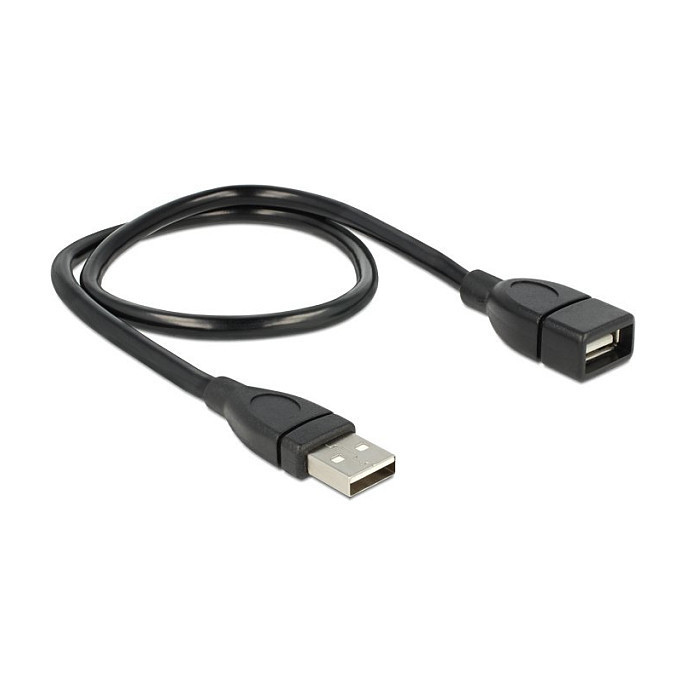 "DeLOCK 50cm USB 2.0. Cable length: 0.5 m. Connector 1: USB A, Connector 2: USB A, USB version: USB 2.0, Connector gender: Male/Female, Maximum data transfer rate: 0.48 Gbit/s, Product colour: Black"\n"This cable enables you to extend your USB 2.0 connection by ca. 50 cm and can be used to connect various devices. Because of a built-in wire the ShapeCable can be bent into any form and then maintains its shape.