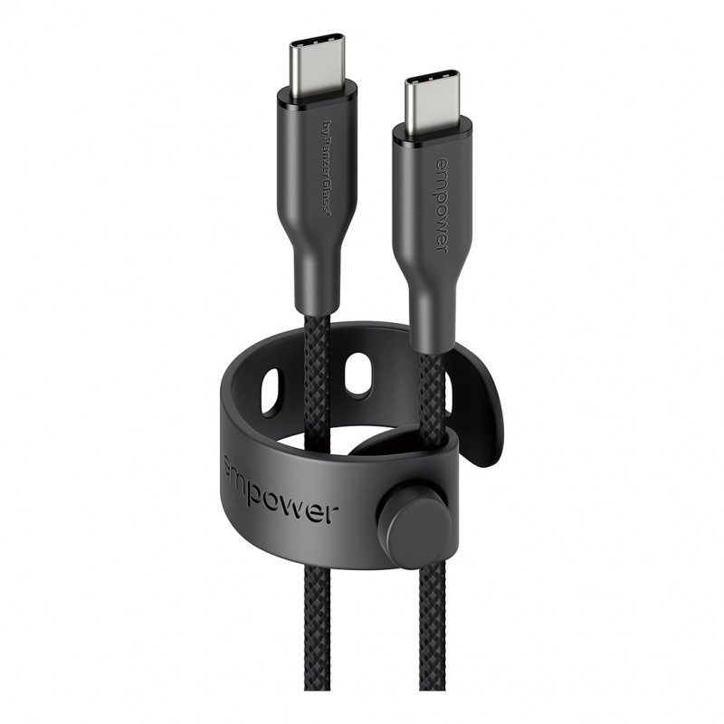 The empower by PanzerGlass® Racing USB-C to USB-C Cable features an ultra-soft and durable silicon interior paired with a braided outer cable sheath for durability and a premium feel. Convenience is key. Keep the cable organized when not in use with a handy strap. And the best part? It's made from 100% post-consumer recycled (PCR) materials.