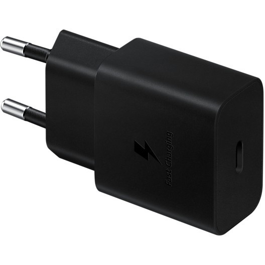 "Samsung EP-T1510NBEGEU. Charger type: Indoor, Power source type: AC, Charger compatibility: Universal. Input voltage: 100 - 240 V, Maximum output voltage: 9 V, AC adapter output current: 2 A. USB Type-C ports quantity: 1, Fast charging. Product colour: Black"\n
