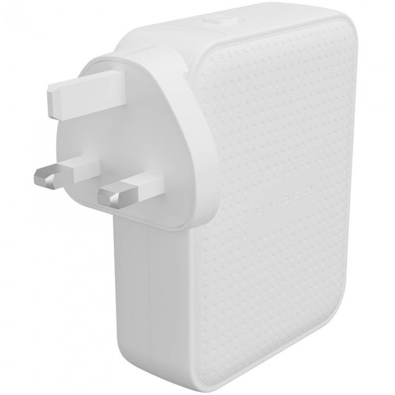 "HYPER HJ1001WHWWGL. Charger type: Indoor, Power source type: AC, Charger compatibility: Gaming controller, Mobile phone, Netbook, Laptop, Smartphone, Tablet, USB Type-C ports quantity: 3, Fast charging. Product colour: White"\n"The HyperJuice 145W PD 3.1 USB-C GaN Travel Charger powers up to 4 devices simultaneously, including pro laptops, tablets, and phones, with its advanced GaN technology. It has everything you need for global travel, thanks to its compact design and included travel adapters. Additionally, it easily transforms into a flexible desktop charger with the included C8 adapter. It’s the perfect solution for staying charged and connected, no matter where you are in the world.