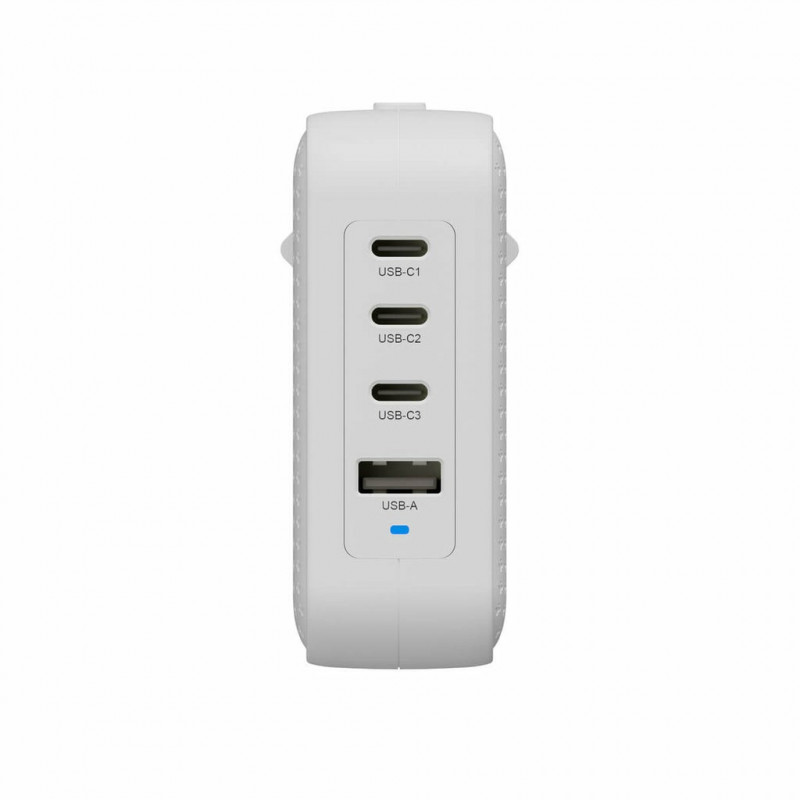 "HYPER HyperJuice 100W USB-C GaN Travel Charger - White. Charger type: Indoor, Power source type: AC, Charger compatibility: Laptop, Smartphone, Tablet, USB 2.0 ports quantity: 1, USB Type-C ports quantity: 4, Fast charging. Product colour: White"\n"The HyperJuice 100W USB-C GaN Charger can power up to 4 devices simultaneously with its three USB-C ports and one USB-A port, allowing you to fast charge your laptop, phone, tablet, or headphones. It has everything you need for global travel, thanks to its compact design and included travel adapters. Additionally, it easily transforms into a flexible desktop charger with the included C8 adapter. It’s the perfect solution for staying charged and connected, no matter where you are in the world.