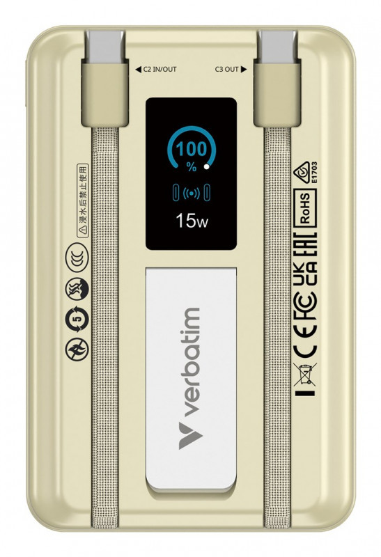 Verbatim 32274 nešiojamasis įkroviklis Ličio polimeras (LiPo) 10000 mAh Belaidis įkrovimas Auksas