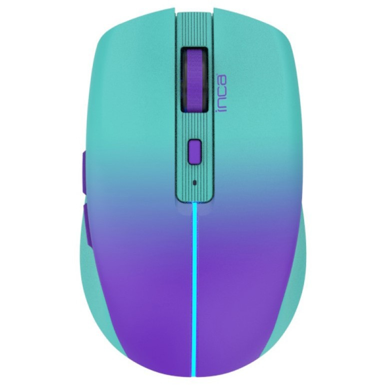 "Inca IWM-511RM. Form factor: Right-hand. Movement detection technology: Optical, Device interface: RF Wireless + Bluetooth + USB Type-C, Movement resolution: 1600 DPI, Buttons type: Pressed buttons, Buttons quantity: 6, Scroll type: Ring. Illumination colour: Multi. Power source: Batteries. Product colour: Green, Violet"\n