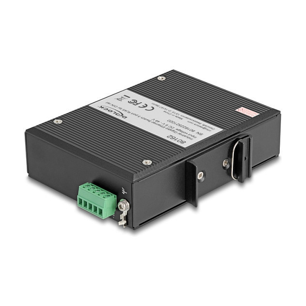 "DeLOCK 80162. Basic switching RJ-45 Ethernet ports type: Gigabit Ethernet (10/100/1000), Basic switching RJ-45 Ethernet ports quantity: 5. Networking standards: IEEE 802.3, IEEE 802.3ab, IEEE 802.3u, IEEE 802.3z. Power connector: Terminal block (5-pin). Form factor: DIN rail"\n"This robust, industry capable Gigabit Ethernet switch by Delock can be used to connect different network components.