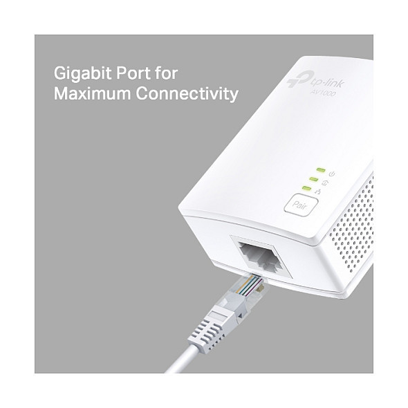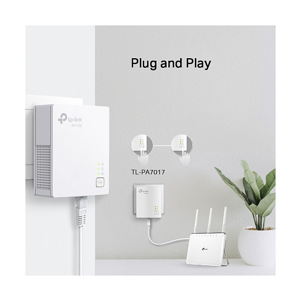 "TP-Link TL-PA7019 KIT. Maximum data transfer rate: 1000 Mbit/s, Networking standards: IEEE 1901, IEEE 802.3, IEEE 802.3ab, IEEE 802.3u, Power plug: Type C. Power consumption (typical): 2.3 W, Power consumption (standby): 0.5 W, AC input voltage: 220 V. Product colour: White. Width: 65 mm, Depth: 52 mm, Height: 28.5 mm. Package width: 190 mm, Package depth: 136 mm, Package height: 100 mm"\n