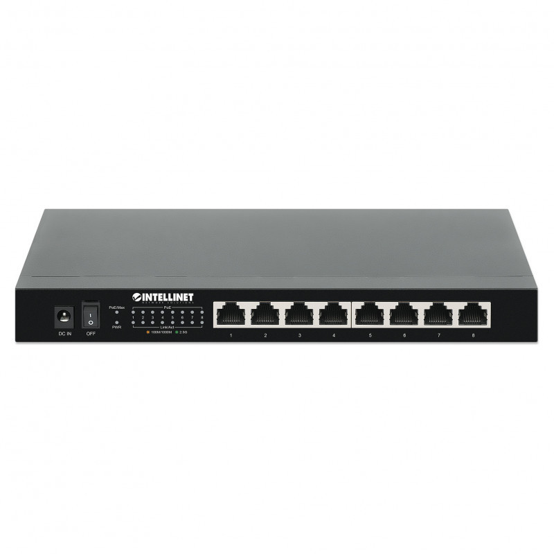 "Intellinet 8-Port 2.5G Ethernet PoE+ Switch Eight 10/100/1000/2500 Mbps PSE PoE+ Ports, 100 W PoE Power Budget, Unmanaged, Desktop Format, Wall-mount Option. Switch type: Unmanaged"\n"Next-gen 2.5 Gbps Desktop 8-Port PoE Switch - Supports 10/100/1000/2500 Mbps, Power over Ethernet 802.3at