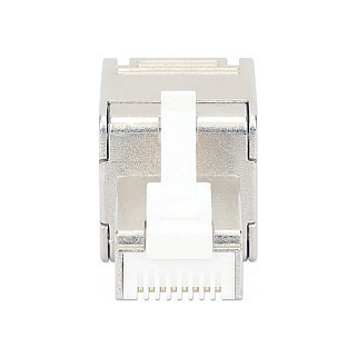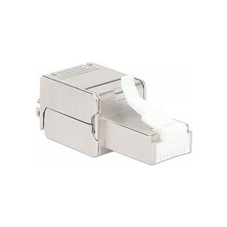 "Intellinet Cat6a 10G Shielded Toolless RJ45 Modular Field Termination Plug, For Easy and Quick High-quality Cable Assembly in the Field, STP, for Solid & Stranded Wire, Gold-plated Contacts, Metal Housing. Connector(s): RJ45, Product colour: Stainless steel, Connector gender: Male. Weight: 20 g, Width: 15 mm, Depth: 41 mm"\n"Field-installable Cat6a STP RJ45 Modular Plug for easy, fast and tool-free high-quality cable assembly