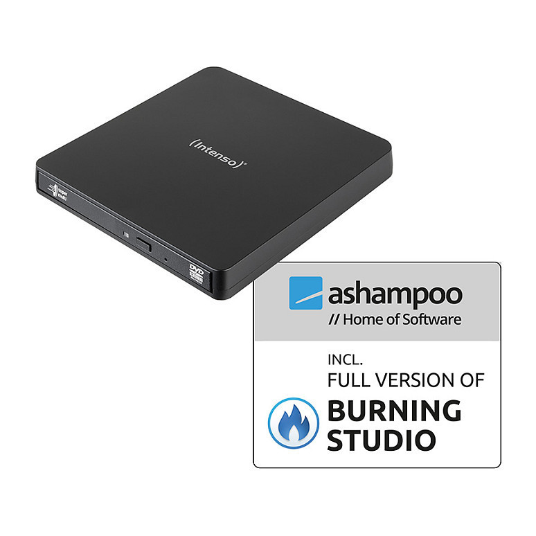 "Intenso EOD 400D Slim. Product colour: Black, Disc loading type: Front. Purpose: Desktop/Laptop, Optical drive type: DVD Super Multi DL, Interface: USB 3.2 Gen 1 (3.1 Gen 1). CD write speed: 24x, DVD+R write speed: 8x, DVD-R write speed: 8x. Width: 142 mm, Depth: 148 mm, Height: 16 mm. Quantity per pack: 1 pc(s), Bundled software: Ashampoo Burning Studio"\n"Reliable external CD/DVD burner.