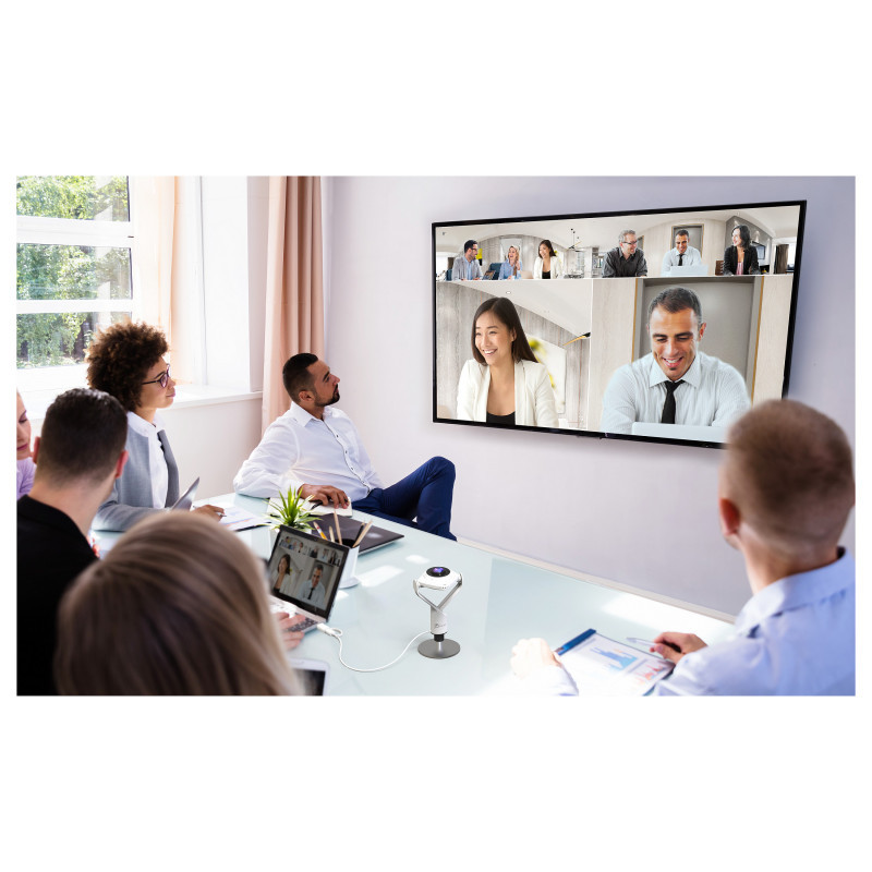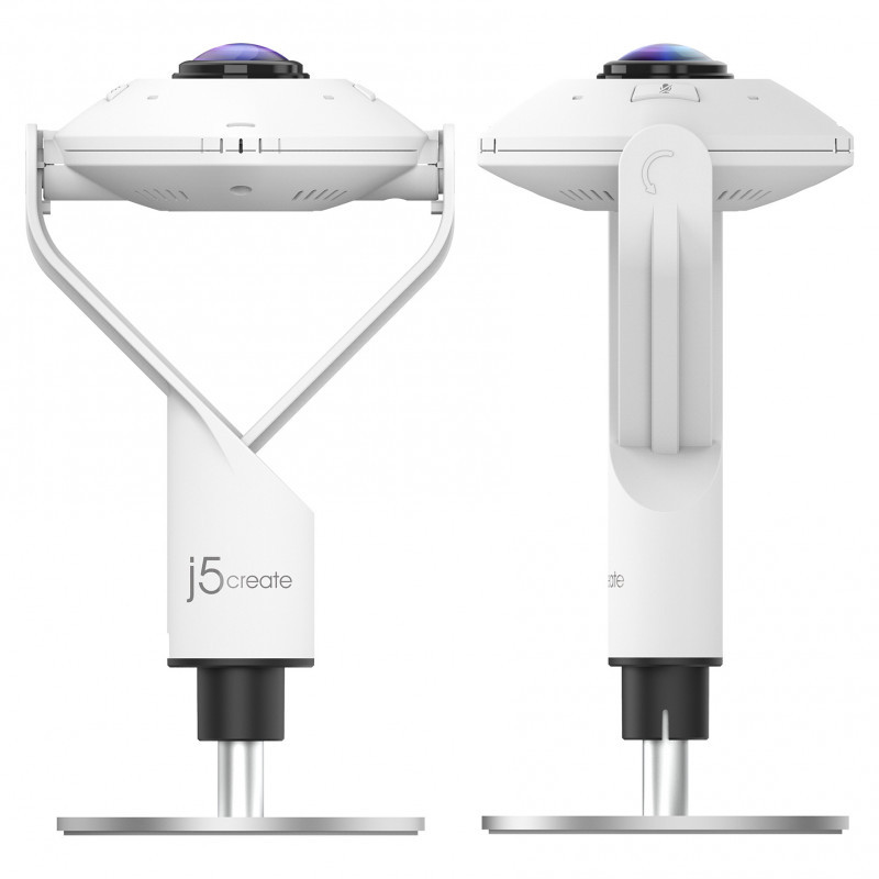 "j5create JVCU360 360° All Around Webcam, 1080p Video Capture Resolution, White and Black. Megapixel (approx.): 2.07 MP, Maximum video resolution: 1920 x 1080 pixels, Camera HD type: Full HD. Interface: USB 2.0, Product colour: Black, White, Mounting type: Stand. Other operating systems supported: ChromeOS. Width: 93.5 mm, Depth: 37 mm, Height: 193 mm. Package type: Box, Package width: 193 mm, Package depth: 125 mm"\n"Enhance your conference calls with the 360° All Around Webcam. This all-in-one virtual meeting device combines HD video with business-grade audio clarity, to help run your video conferences smoothly. This high-definition, plug-and-play webcam, is ideal for any space. Capture a 360° panoramic view of the room or focus on specific presenters with the various display modes. The 360° All Around Webcam is equipped with a USB-C® cable and a USB™ Type-A connector to work with both your older and newer devices."