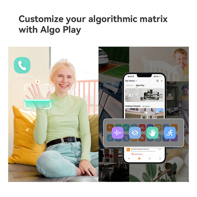With Algo Play, you can combine as many and more specialised algorithms as you like, such as gesture calling, zone intrusion, people counting detection, etc., to make the IMOU product fit your needs perfectly. (Only 5+5MP version supported)