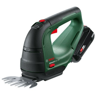 "Bosch AdvancedShear 18V-10. Blade width: 10 cm, Shrub blade tooth spacing: 8 mm, Product colour: Black, Green. Battery voltage: 18 V, Battery technology: Lithium-Ion (Li-Ion), Charging time: 2 h. Width: 105 mm, Depth: 462 mm, Height: 163 mm"\n