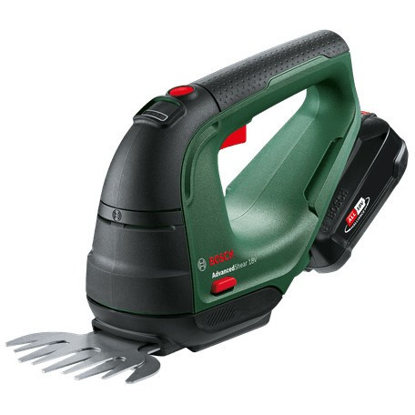 "Bosch AdvancedShear 18V-10. Blade width: 10 cm, Shrub blade tooth spacing: 8 mm, Product colour: Black, Green. Battery technology: Lithium-Ion (Li-Ion), Battery voltage: 18 V, Charging time: 2 h. Width: 105 mm, Depth: 462 mm, Height: 163 mm"\n"Superior performance and manoeuvrability for effortless shaping and trimming