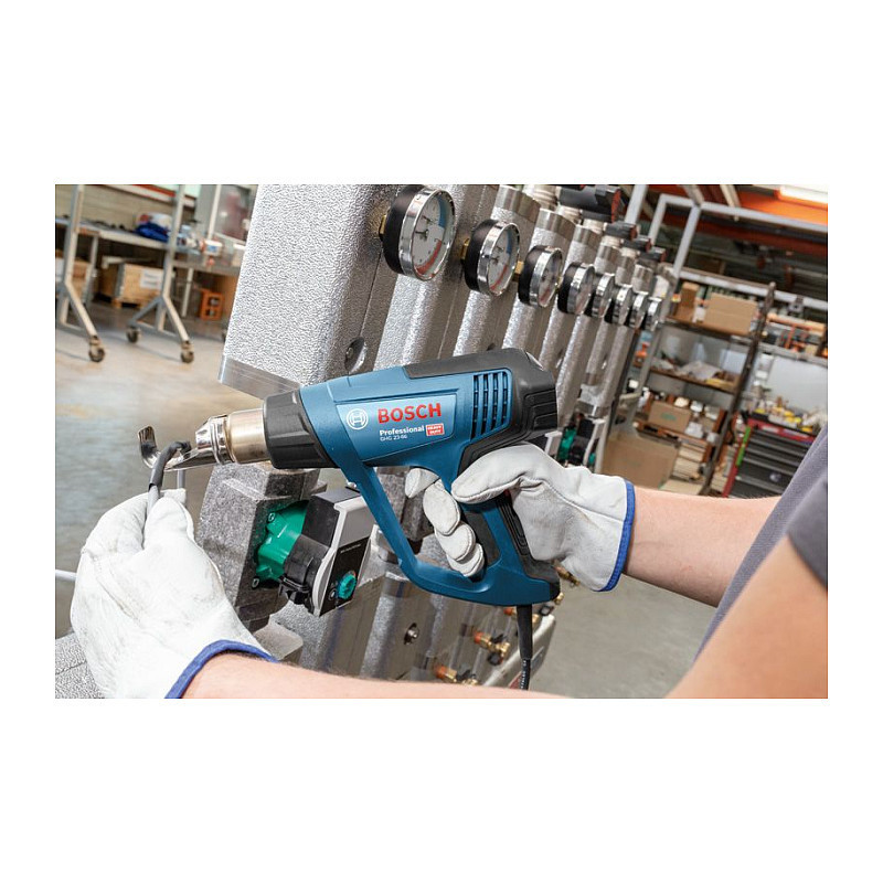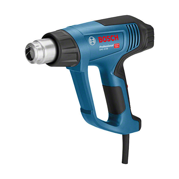 "Bosch GHG 23-66 Professional. Product type: Hot air gun, Handle shape: Pistol handle, Product colour: Blue. Maximum airflow: 500 l/min, Working temperature (max): 650 °C, Minimum airflow: 150 l/min. Power source: AC, Input power: 2300 W. Depth: 245 mm, Height: 201 mm, Weight: 670 g"\n