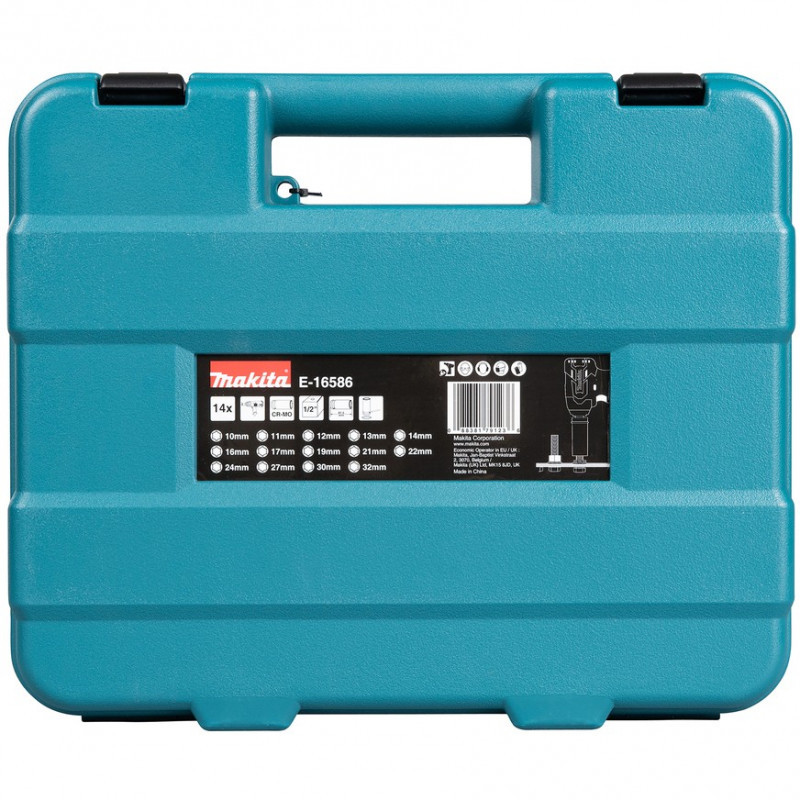 "Makita E-16586. Product type: Impact socket set, Product colour: Black, Green, Number of socket heads: 14 head(s). Height: 81.5 mm"\n