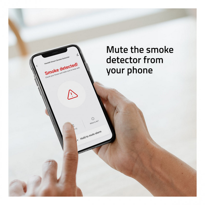 "Hombli smarter Rauchmelder weiß 2+1 Promo Pack. Detector type: Optical detector, Connectivity technology: Wireless, Product colour: White. Power source: Battery, Battery voltage: 3 V, Battery technology: Alkaline. Depth: 31.5 mm, Diameter: 12 cm, Weight: 142 g. Package width: 123 mm, Package depth: 123 mm, Package height: 130 mm"\n