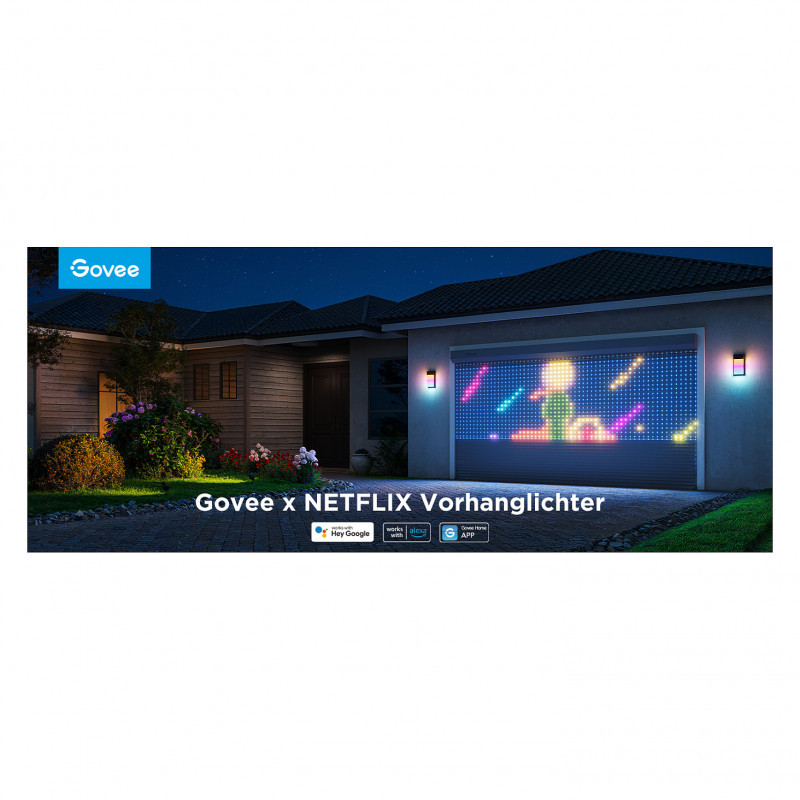 "Govee H70BC. Type: Smart string light, Interface: Wi-Fi/Bluetooth, Product colour: Transparent. Applications supported: Govee Home. Energy efficiency class: G, Energy consumption per 1000 hours: 12 kWh, Energy efficiency scale: A to G. Length: 1500 mm. Package type: Hanging box"\n"With Wi-Fi and Bluetooth control features, and support for voice assistants such as Google Assistant and Alexa, you can easily control the lights using the Govee Home app. These curtain lights are the perfect choice if you want to add a touch of magic to any moment, from quiet evenings to dynamic parties.