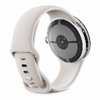 "Google Pixel Watch 4. Display technology: AMOLED, Touchscreen. RAM capacity: 2048 MB, Flash memory: 32 GB. Wi-Fi. GPS (satellite). Battery capacity: 455 mAh. Weight: 36.7 g. Waterproof up to: 50 m, Band material: Fluoroelastomer, Band colour: Beige, Band size: S/L. Operating system installed: Wear OS"\n